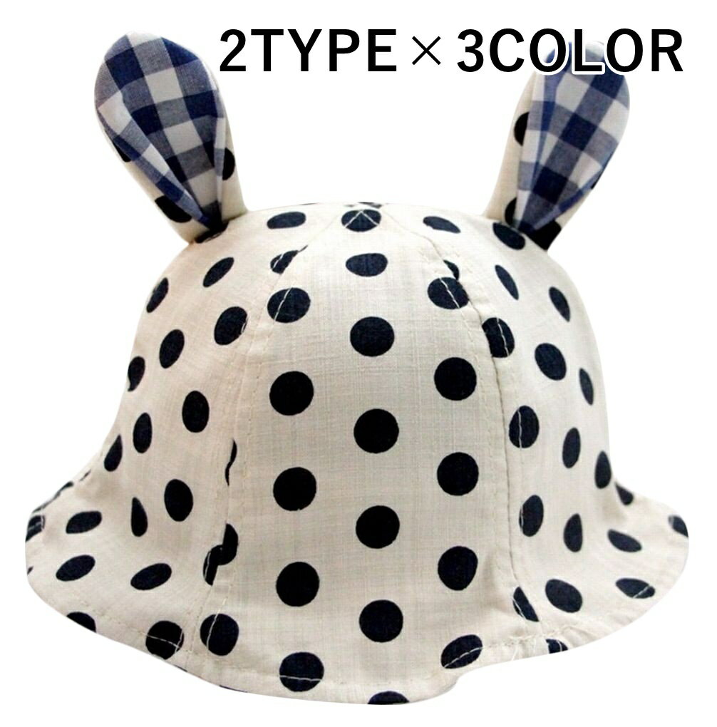 送料無料 ベビー帽子 ベビーハット ベビーキャップ 耳付き帽子 ミミツキ 子供用 幼児 キッズ 水玉 ドット柄 男の子 女の子 男児 女児 紫外線対策 日除け 日よけ 可愛い おしゃれ