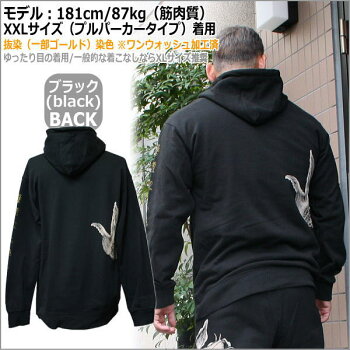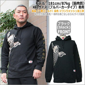 和柄 プル パーカー「鯉魚登竜門」送料無料 鯉 龍 竜 裏起毛 パイル メンズ レディース 大きいサイズ 手染 京都