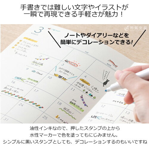 一緒に使いたいアイテムミドリ スタンプ 浸透印 968 円にじまずキレイに押せて、スタンプの上から水性マーカーで色を塗れる、ノートやダイアリーなどを簡単にデコレーションできる楽しいスタンプです。