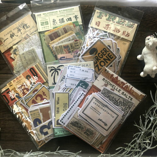 海外製 ヴィンテージデザインステッカー (s41) 30柄60枚入り 外国 パッケージ フライヤー 看板 スタンプ 数字 ナンバー チケット タグ 英字 レトロ アンティーク シール 手帳