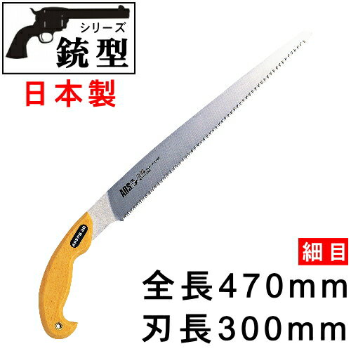 【 のこぎり ・ 日本製】《銃型シリーズ》ウッドハンドル ピストル型のこぎり 細目(刃長300mm) サヤ付き【お庭/庭木/枝切り/ノコギリ/庭のお手入れ/切る/よく切れる/イチョウの木や カキの木 等の剪定にも/業務用/家庭用/刃渡り長め/替刃式/鋸/カット