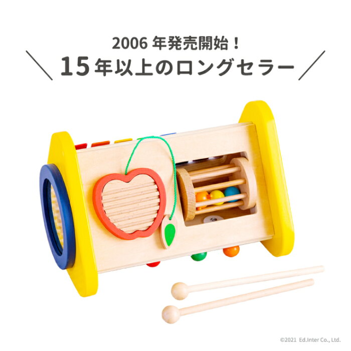 商品説明ドラム・シロフォン・ギロ・ラトル・歯車の子どもが大好きな5つの音が楽しめる木のおもちゃです。